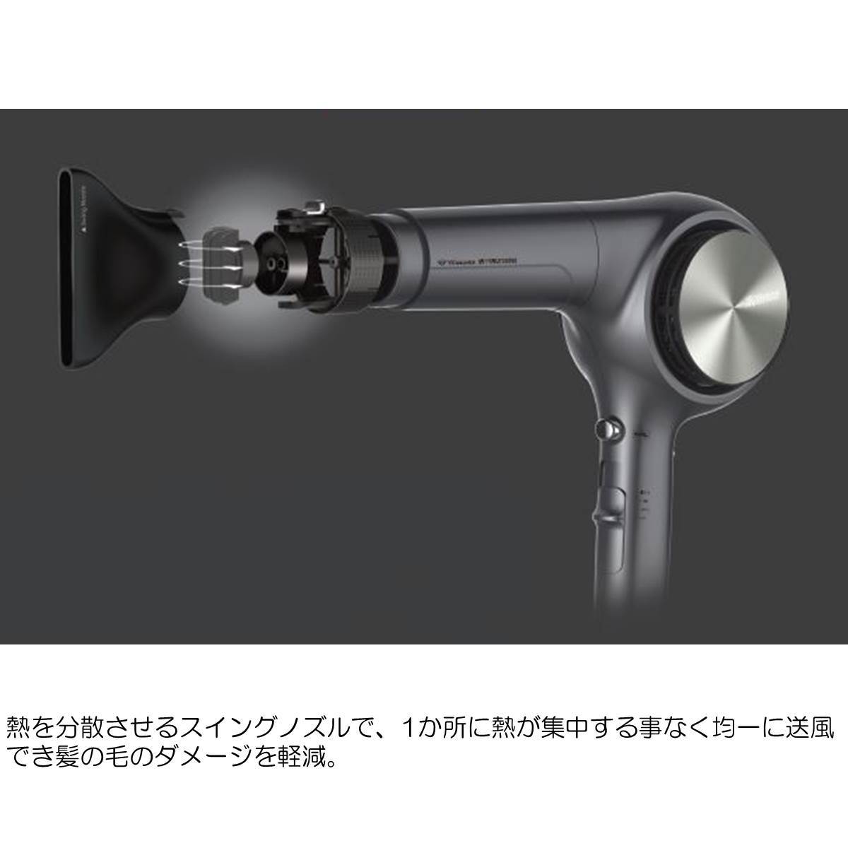 ●熱を分散させるスイングノズルで1か所に熱が集中することなく均一に送風することで髪の毛のダメージを軽減